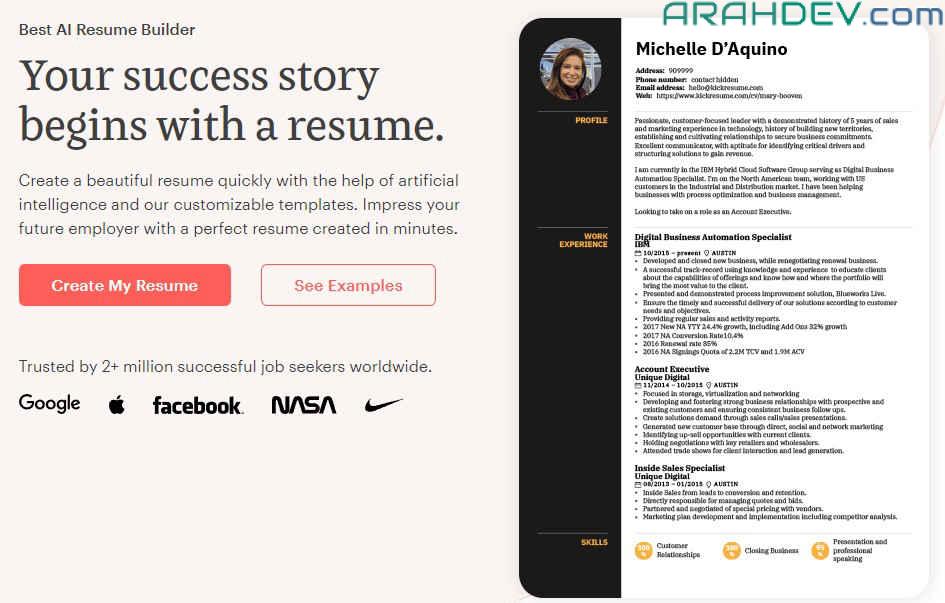 - bangun keseluruhan resume anda menggunakan AI. Dengan remote job matching, cover letter building, resume checking, dan AI writing tools, anda mempunyai semua yang dibutuhkan untuk melamar perkerjaan impian. silahkan kunjungi link berikut
