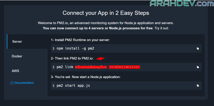 3.copy link koneksi pm2 to pm2.io