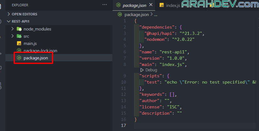 package.jsondalam proyek Node.js. Filepackage.jsonadalah file konfigurasi yang digunakan untuk mengelola proyek Node.js, dan berisi informasi tentang proyek, dependensi, skrip, versi, dan konfigurasi lainnya.