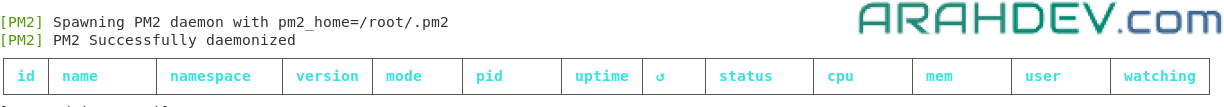 pm2 list- jika muncul gambar seperti dibawah, maka instalasi sukses