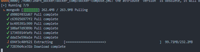- jika image belum ada di local, maka docker-compose akan mendownload (pull) image di docker hub