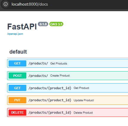/products/(HTTP POST) untuk membuat produk baru. response_model=Product: Mengembalikan data produk yang baru dibuat dalam format yang sesuai dengan modelProduct.
