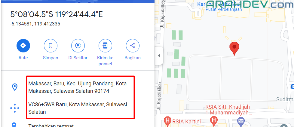 - kita berhasil mendapatkan alamat bahkan lebih lengkap walaupun tidak spesifik lapangan karebosi