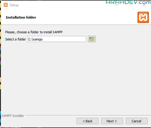 - tentukan lokasi folder dimana aplikasi akan tersimpan, kemudian next