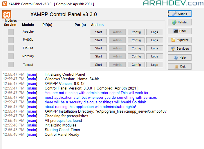 - selanjutnya akan terbuka control panel aplikasi xampp