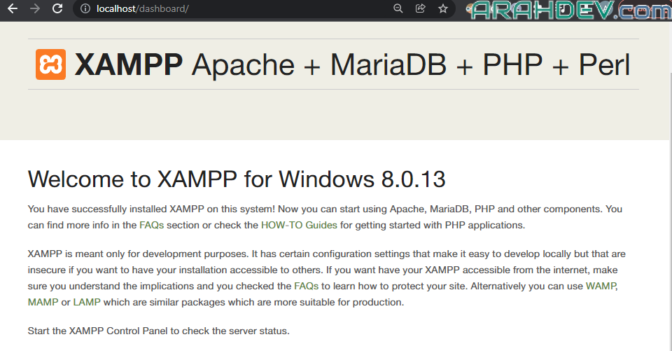 - jika kita coba buka http://localhost/dashboard/ pada browser maka tampilannya seperti berikut