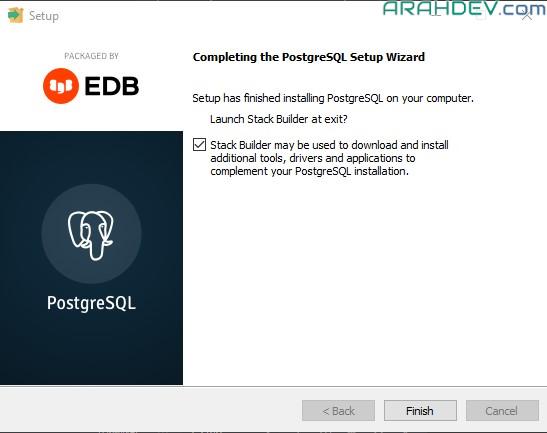 - proses instalasi selesai. unchecklist stack builder. kemudian klik finish
