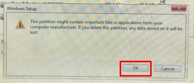 Sebelum menghapus akan muncul notifikasi untuk memperingati tindakan kita, pilih ok jika Anda benar-benar telah memastikan partisi yang Anda pilih.