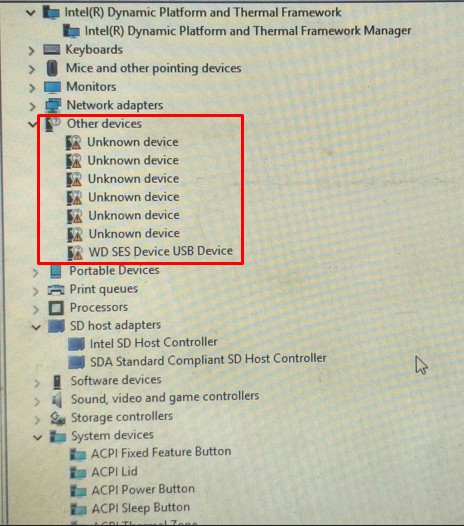 - Setelah terbuka, maka Anda akan melihat beberapa unknown device pada bagian other device. Itu merupakan perangkat keras yang terdapat pada komputer kita namun sistem operasi tidak dapat menggunakannya karena software drivernya belum terinstall. Sehingga biasanya setelah install ulang kita tidak dapat mengguakan wifi ataupun touchpad komputer kita.