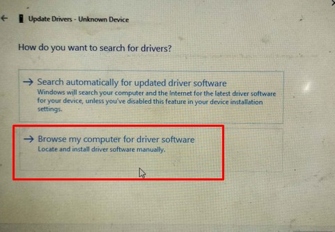 - Kemudian pilih pencarian melalui komputer Anda. Kita akan mencari driver yang sebelumnya kita backup.