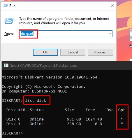 | 2 | Partition scheme and target system type | Skema partisi MBR (Master Boot Record)GPT (GUID Partition Table) Untuk laptop/notebook release terbaru biasanya telah menggunakan GPT sedangkan versi lama biasanya masih MBR Fyi GPT adalah teknologi partisi hardisk generasi terbaru menggantikan MBR. Untuk memastikan Anda dapat melakukan pengecekan. Buka cmd dengan windows key+r. Ketikkan diskpart Kemudian pada cmd ketikkan list diskMaka akan tampil seperti pada gambar Jika pada kolom gpt terdapat tanda (*) artinya ‘ya’ menggunakan sistem GPT begitupun sebaliknya. lihat gambar 1 |