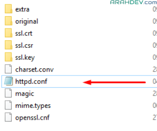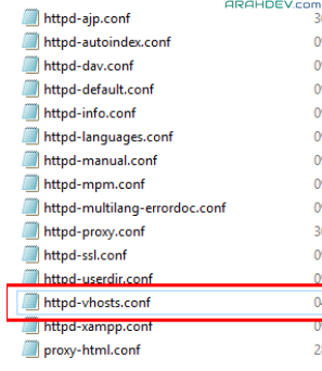 - buka file konfigurasi virtual host xampp (httpd-vhosts.conf)
