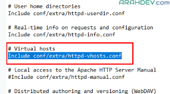 - buka file konfigurasi virtual host xampp (httpd-vhosts.conf)