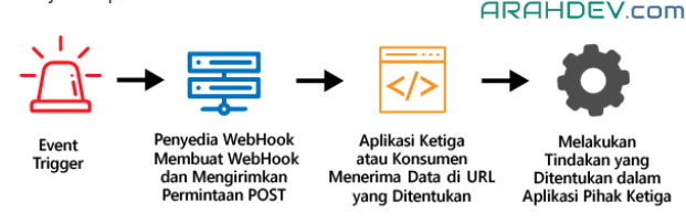 - Aplikasi penerima dapat mengambil data yang dikirimkan melalui Webhook dan melakukan tindakan tertentu berdasarkan data tersebut.