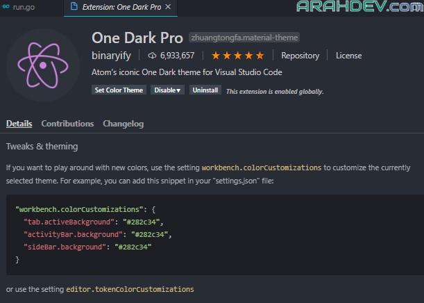 tema tampilan screen code seperti code editor atom dengan kesan dark.