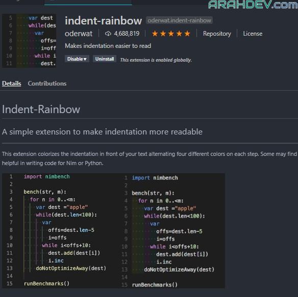 memberikan warna pada indentasi code agar lebih mudah terbaca. khususnya mengindentifikasi nested code.