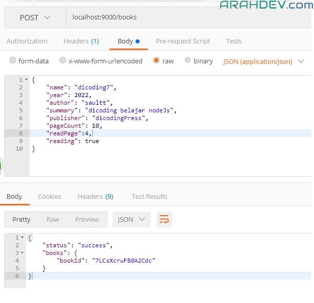return successWithMessage(h, 201, "Buku berhasil ditambahkan" , {bookId:id} );