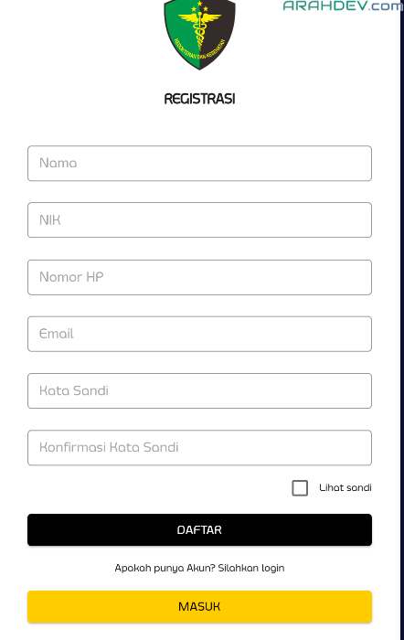 - Jika pilih daftar, silahkan masukkan informasi berikut