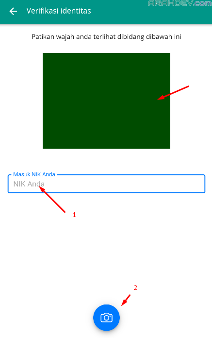 - Selanjutnya akan dilakukan verifikasi indentitas dimana Anda diminta mengambil foto wajah dan memasukkan nomor NIK Anda. Pastikan wajah Anda menghadap kamera dan terlihat dengan jelas.