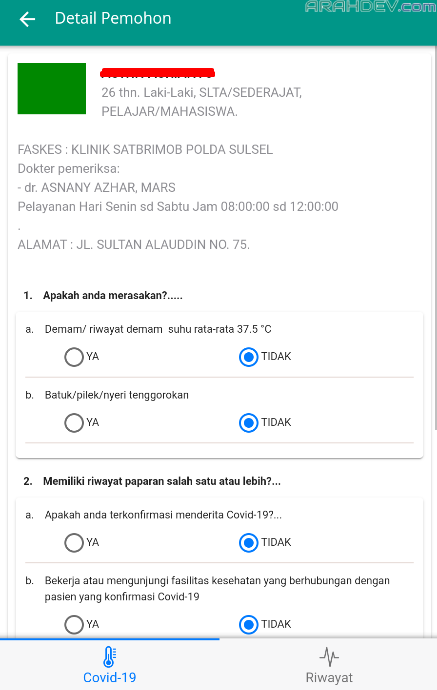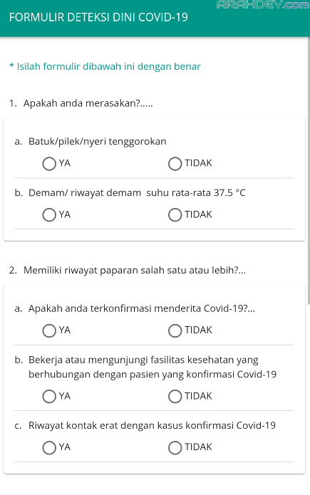 - Selanjutnya. Silahkan Isi formulir deteksi dini covid 19