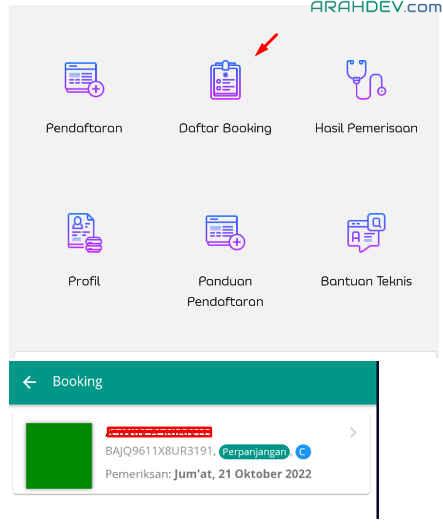 - Untuk melihat jadwal, Anda dapat memilih menu daftar booking