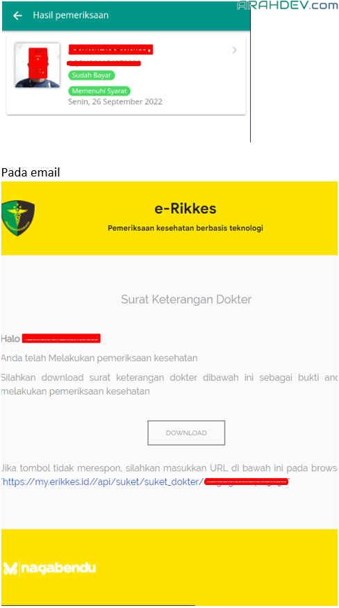 - Jika telah melakukan pemeriksaan maka hasilnya dapat dilihat di email ataupun di menu hasil pemeriksaan
